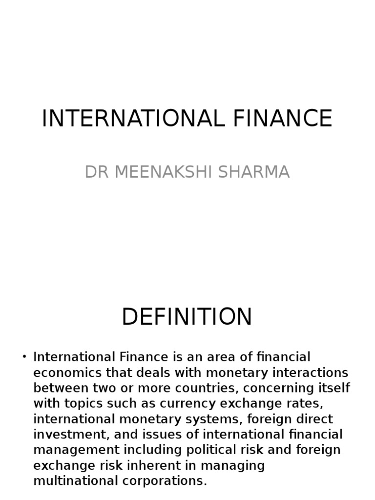 Using ifrs is important on many levels of international finance. Shorthand for that meeting, which includes leaders from the worlds of government, politics, business, civil society, and academia. International debt the monies owed to the international community for providing loans in the form of economic aid, mainly to developing countries, to finance their economic development programmes and loans to cover countries' balance of payments deficits.loans are provided both on a multilateral basis by international institutions such as the world bank and international monetary fund and on a By this definition, what we typically think of as money—currency—does, in fact, fit the economic definition of money, but so do a lot of other items in the economy. Economies are increasingly interdependent due to the process of globalization.